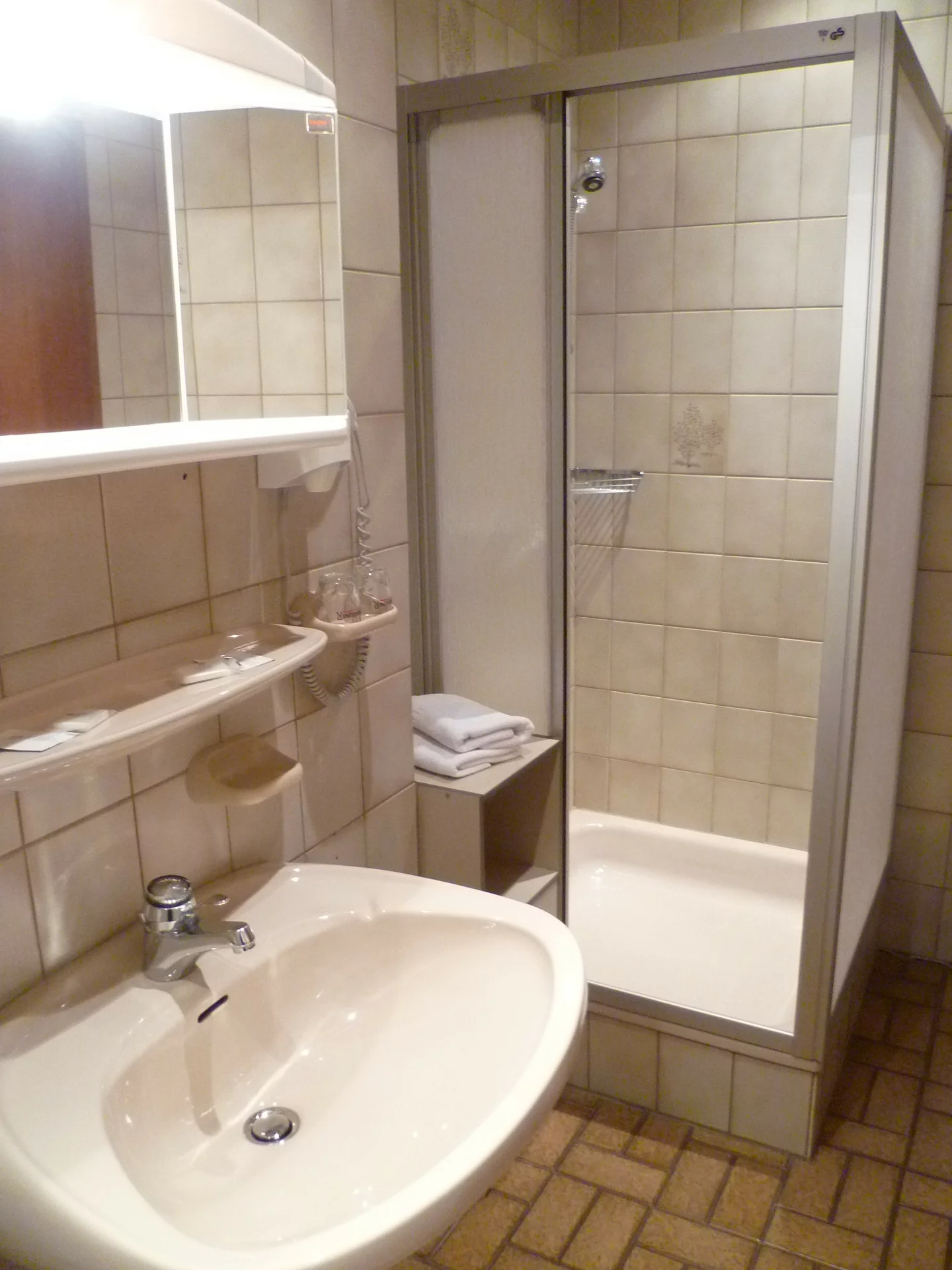 Unsere Doppelzimmer sind zweckmäßig eingerichtet. Sie verfügen über ein Doppelbett oder auch teilweise getrennte Betten. Im Zimmer finden Sie einen Kleiderschrank, Garderobe mit Spiegel sowie eine Sitzecke mit Tisch und 2 Stühlen. Dazu verfügt jedes Zimmer über einen Flachbildfernseher mit Sideboard. Alle Zimmer sind Nichtraucherzimmer und abdunkelbar mit Rollos. Einige Zimmer haben einen Balkon. Jedes Zimmer hat ein eigenes Bad. Die Bäder sind ausgestattet mit Dusche / WC / Waschbecken, Fön, Handtücher und Seife. Das WLAN ist kostenlos verfügbar.